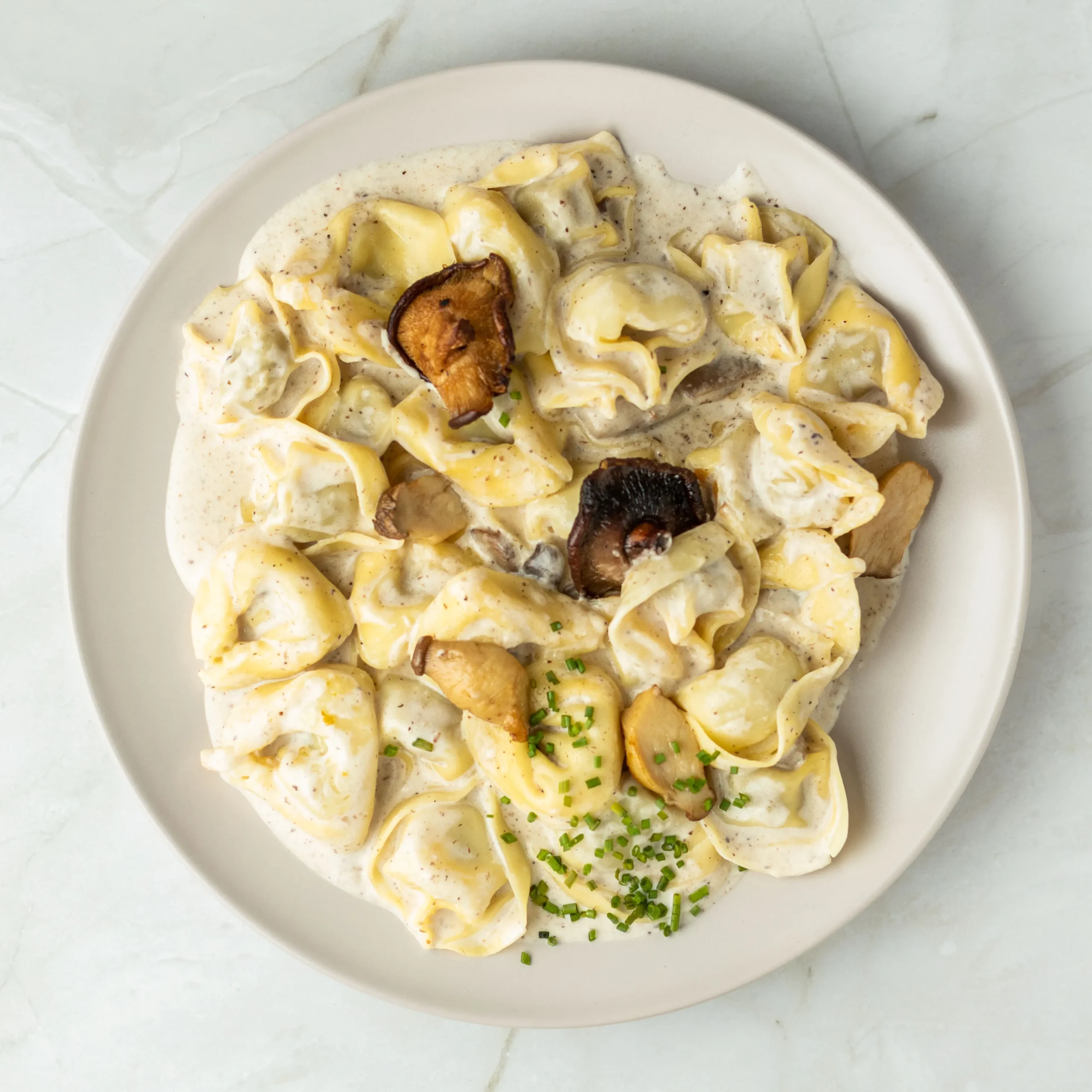 Tortellini , nata , trufa , cebolla , parmesano , mantequilla , aceite de oliva